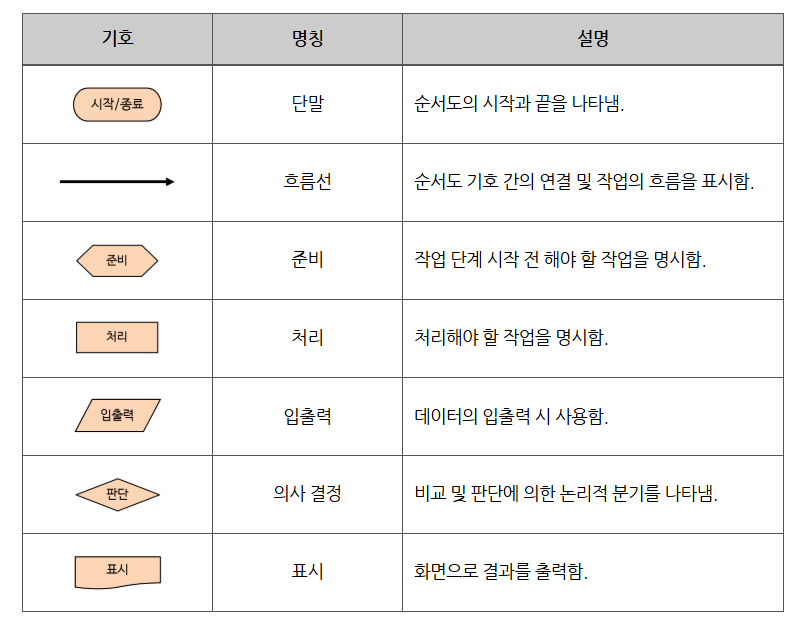 그 로직을 명확히 하기위해 통일된 기호와 도형을 사용하여 표시한다.