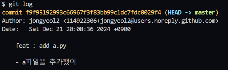 - 커밋 내역을 확인해보고 싶을때 사용하는 명령어