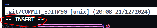 이상태에서 쓰기모드인 Insert 모드로 들어가서 커밋메시지를 작성해야한다.