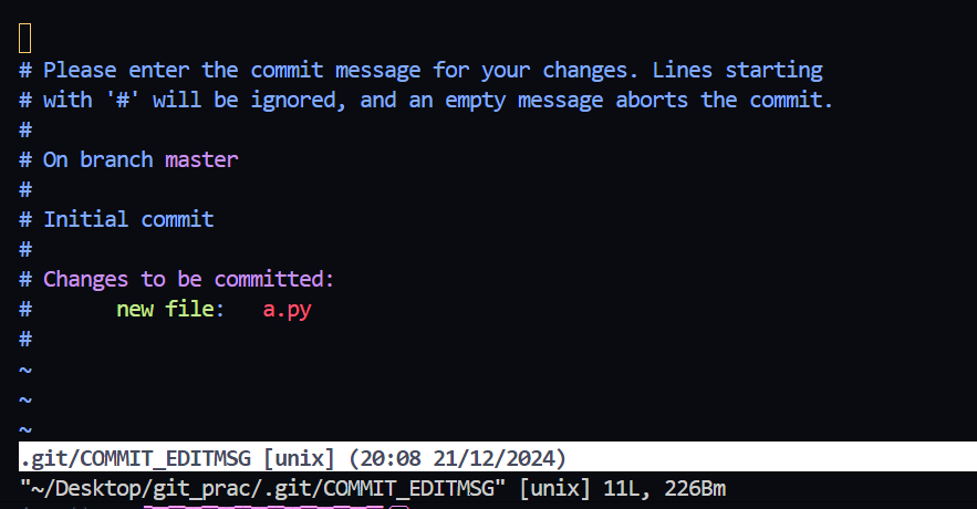 바로 commit 을 하게되면 vi 편집기가 열리게 된다.