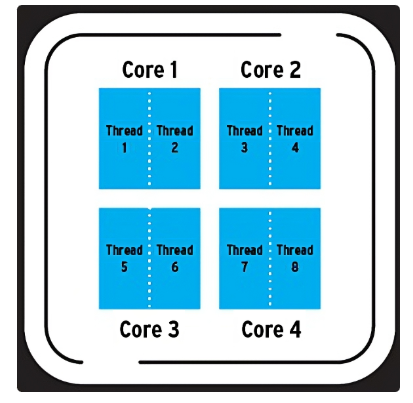 4코어가 물리적 코어 갯수면, 8쓰레드는 논리적 코어 갯수를 말한다.