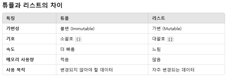 쉽게 이해하자면 수정할 수 없는 리스트 = 튜플 이다