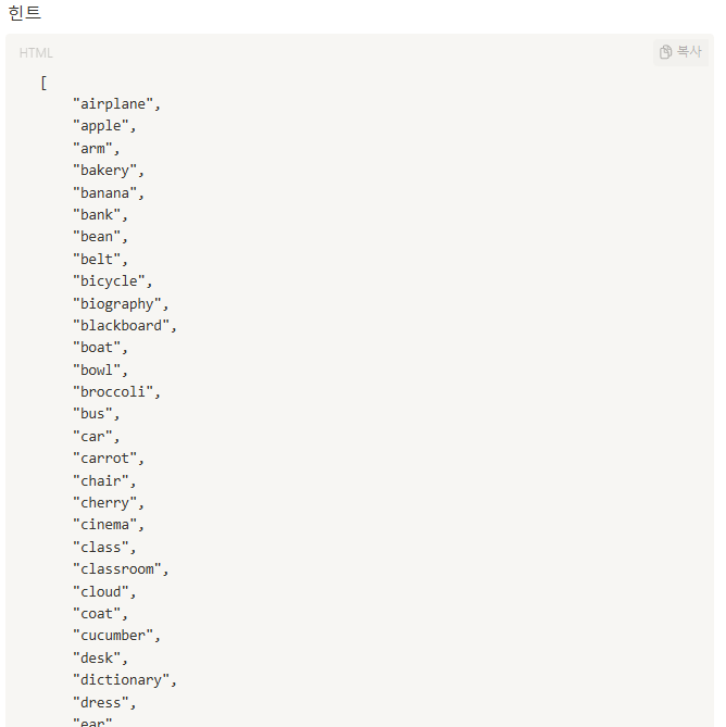 요런식으로 단어들 리스트만 던져주고 끝이었다.