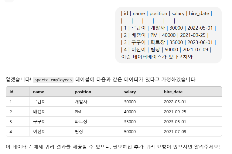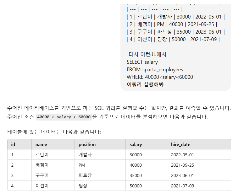 챗지피티도 정상적으로 쿼리가 돌아갈때와