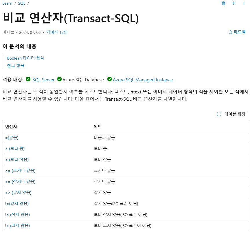 공식문서를 찾아보려하는데 SQL 관련은 Oracle 부터 Microsoft SQL 과 MYSQL 너무 많지만 모든 버전과 시스템마다 약간씩 차이나는걸 다 알아보긴 힘들어 내기준 가장 편하게 정리가 잘되어있는 Microsoft SQL Server 공식문서를 찾아보았다.