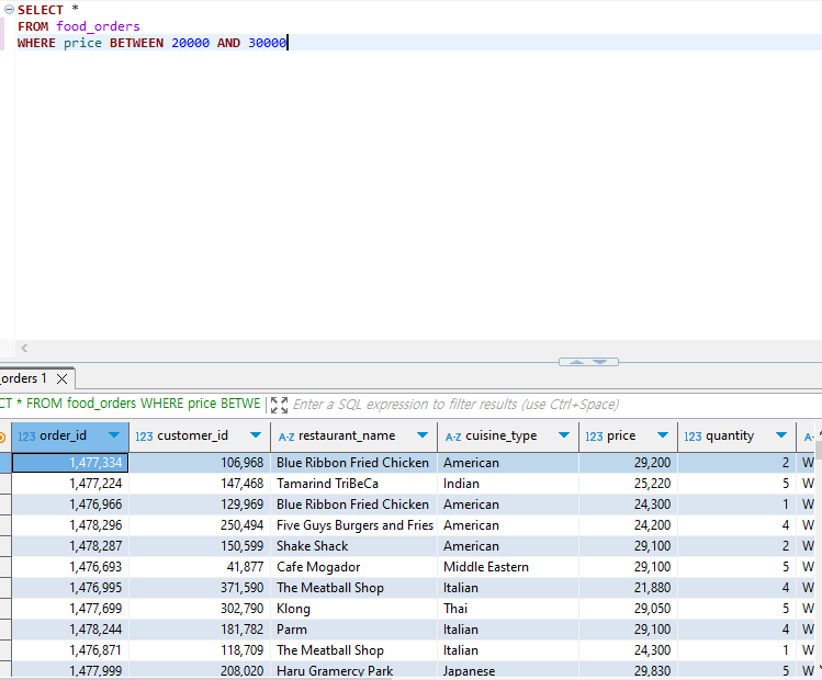 BETWEEN 부분을 살펴보았는데