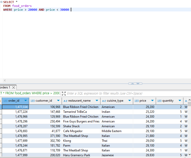 그후 price가 20000 부터 30000 사이의 값들은 제대로 뽑힌걸 확인했고