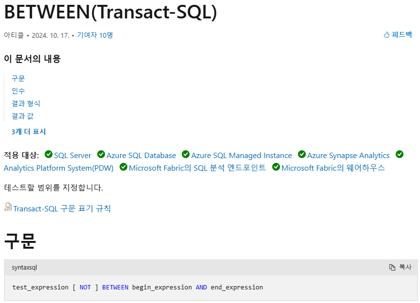 처음에는 챗지피티의 할루시네이션이 아닌 사용자 편의를 위해 SQL 문법이 발전하면서 버전업에 따라 비교연산자2개로 범위지정도 가능하게 바뀐건가?? 라는 의심을 하였지만